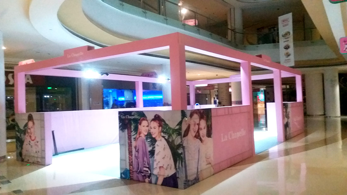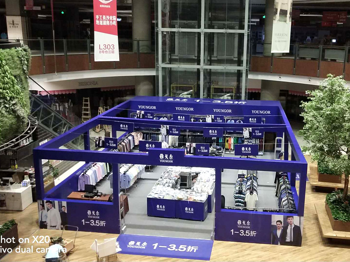 這樣常見的促銷廣告圍擋,使用桁架作為支架,噴繪燈布包裝制作的而成的,成本不高,裝飾和宣傳效果好,鞋類包包類服裝類最常用的就是這一塊了,桁架也有人念橫架或者航架,商場或者有促銷經驗的人一般一聽就知道了。